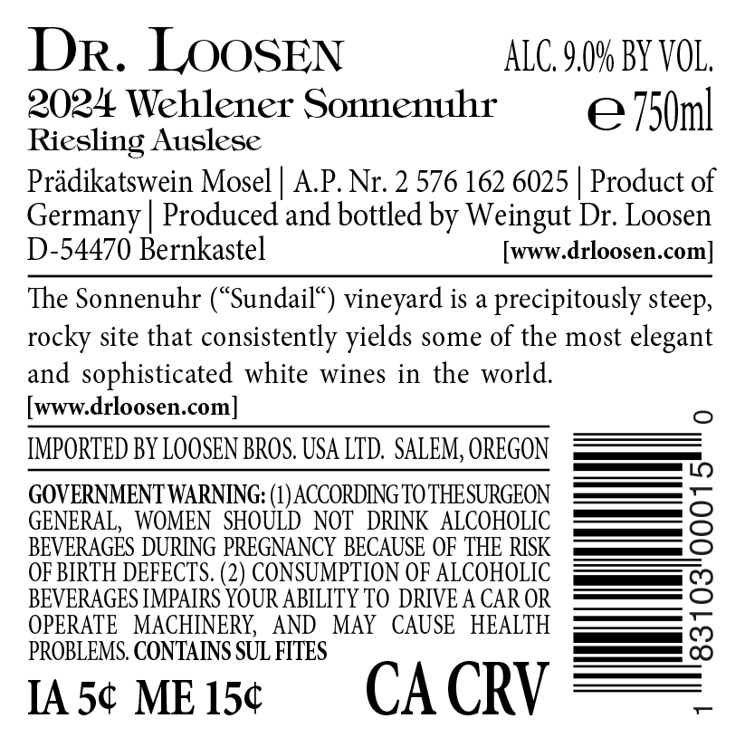 Dr. Loosen Wehlener Sonnenuhr Riesling Auslese