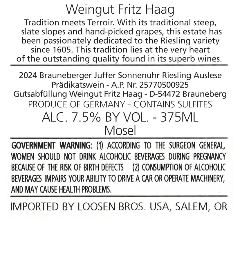 Fritz Haag Brauneberger Juffer-Sonnenuhr Riesling Auslese Goldkapsel