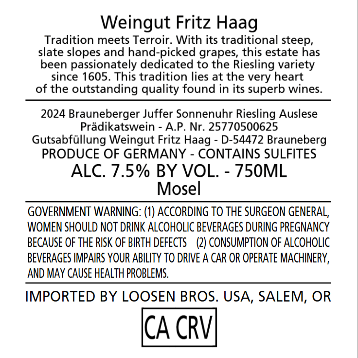 Fritz Haag Juffer Sonnenuhr Auslese 2024 dLabel